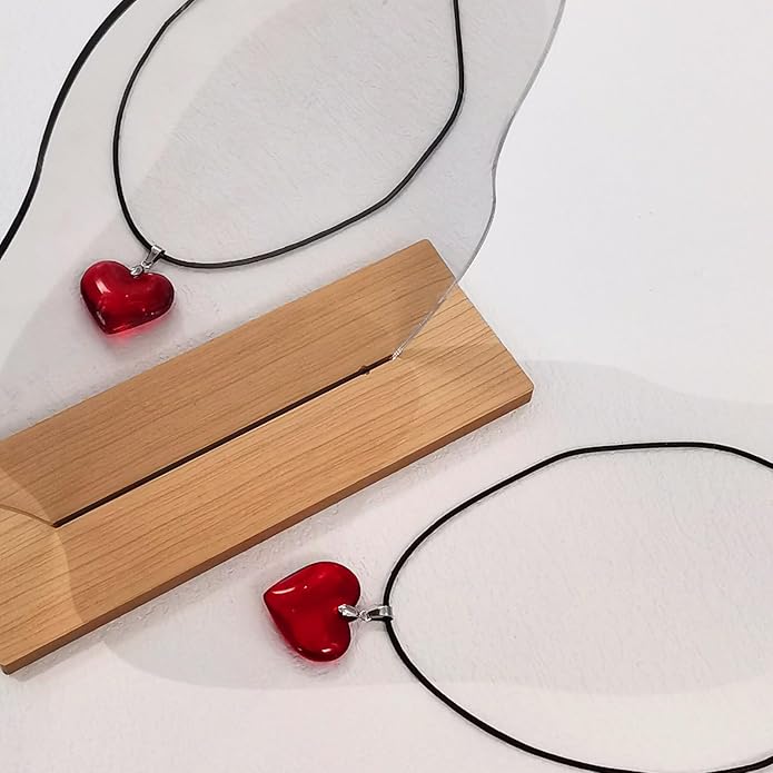 - ❤Y2K Trendy Jewelry: Large glass heart pendant on leather rope chain, full of y2k street style, make you look more fashionable, charming, cute and confident.