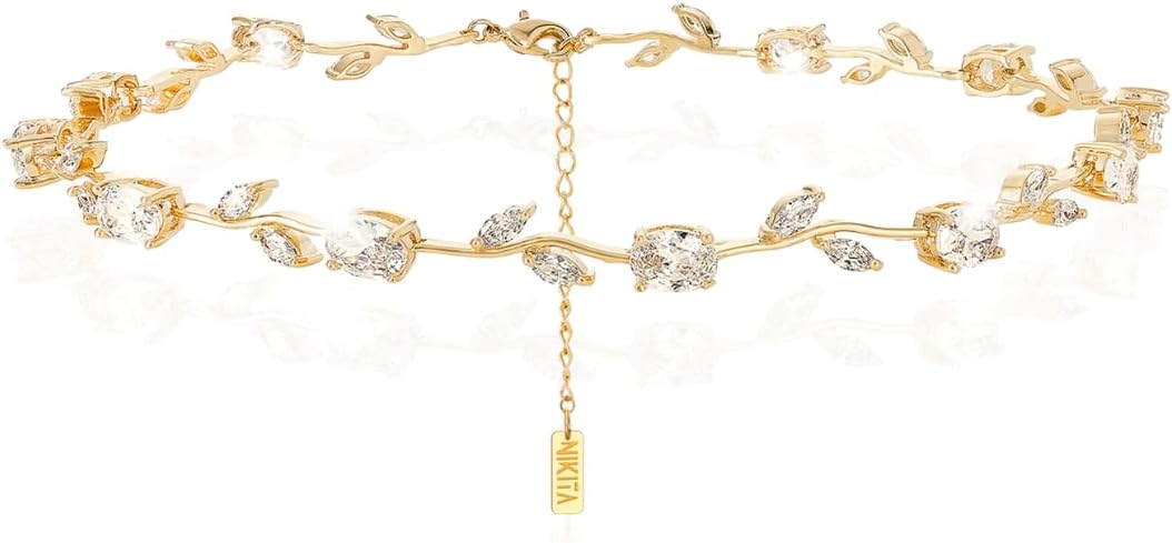 Nikita By Niki 18K Leaf Choker Necklace – Elegant Bridal Choker for Weddings, Formal Choker Necklace for Women, Dainty Wedding Jewelry Gift