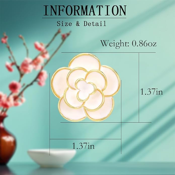 - 💗 【White Camellia Size】 The size of enamel brooch is 1.37 inches,and the weight of this brooch is 0.92 oz. And this camellia lapel pin will come with a delicate box.