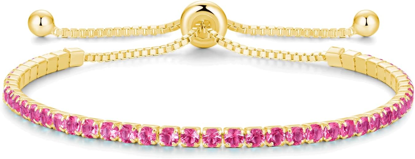 - ❤️Tennis Bracelets for Women❤️: MADE WITH LOVE. Tennis bracelet featuring round 2.5mm created birthstones in four-prong basket settings. Measures up to 9.5 inches in Length. This item is not intended for users under 12 years old.