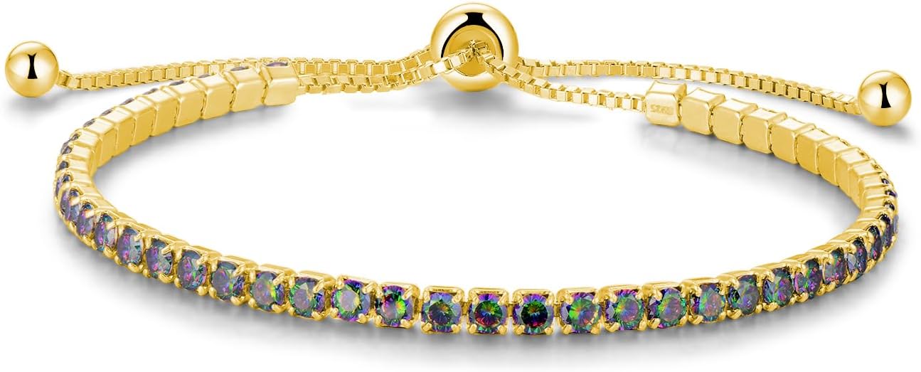 Sterling Silver Birthstone Tennis Bracelets for Women 2.5mm Tennis Bolo Bracelet Fashion Jewelry Birthday Gifts for Women Mom Wife | Adjustable Size 9"