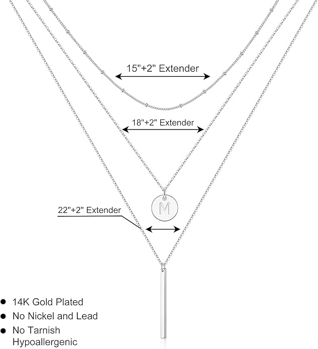 - SIZE: 15"+ 2"/18"+2"/22"+2" Layered Initial Necklaces have three separate chains, adjustable, each individually wrapped. Layered Necklace 14K Plated Jewelry