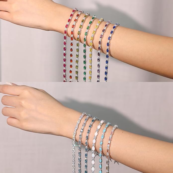 - ❴♥Birthstone Tennis Bracelet for Women♥ ❵Classic and timeless, the FANCIME Alexandrite Tennis Bracelet is brilliant. There are 12 different color's gemstones corresponding to the birthstone of each month.The bracelet for women is perfect for layering with other bracelets or wearing on its own for a minimalist, chic look.