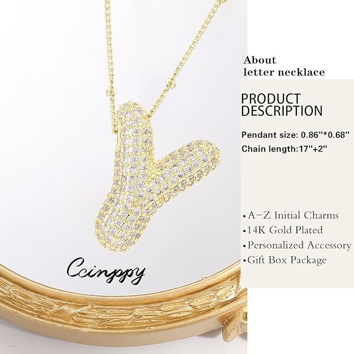 - Trendy Letter Necklace : The letter initial necklace is all the rage right now, it is cute and trendy, the diamonds on the initial stand out with flash, and the hollow design on the back adds a cute touch