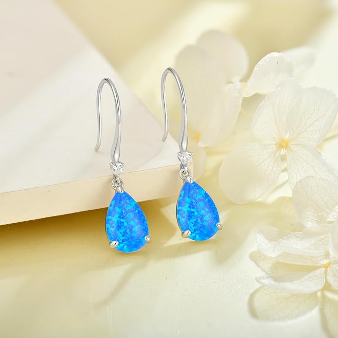 - The teardrop earrings are well crafted in 925 sterling silver and created opal.We offer lead free, nickel free and hypoallergenic jewelry that are safe to wear.