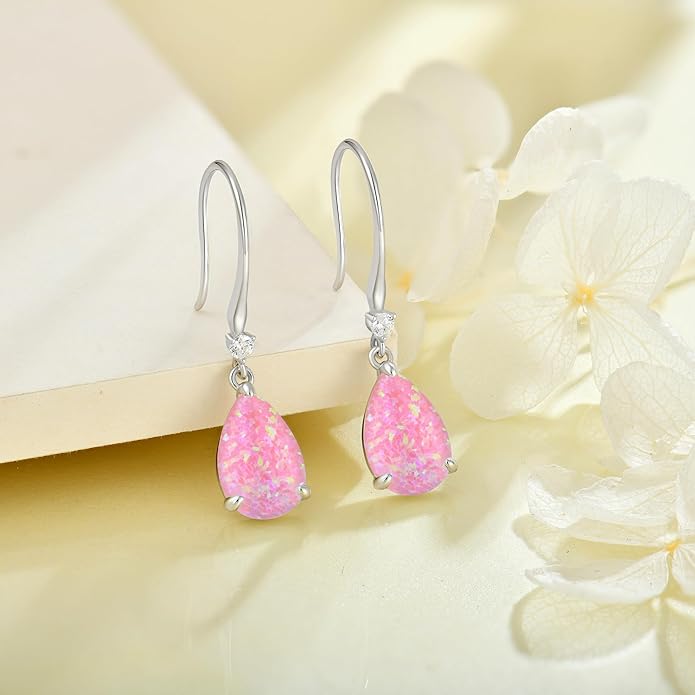 - The teardrop earrings are well crafted in 925 sterling silver and created opal.We offer lead free, nickel free and hypoallergenic jewelry that are safe to wear.