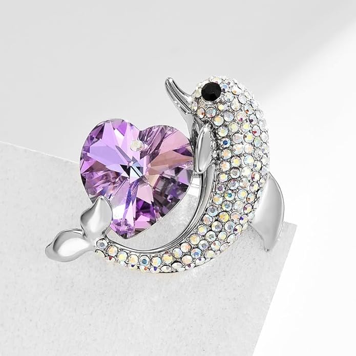- 🐬【Dolphin Brooch Designs】Dolphin brooch pin with sparkling crystal rhinestone, beautiful and elegant. Rhinestone dolphin brooch pin is inspired by ocean, and the detailed carving and exquisite craftsmanship bring it to life. The dolphin animal is widely believed to symbolise peace, wisdom and friendship.