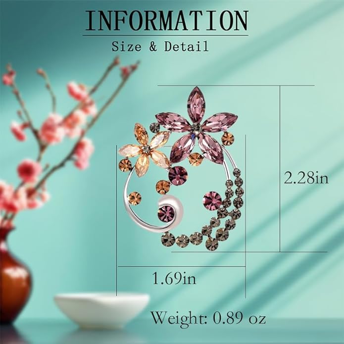 - ❤️【Austrian Crystal Flower Brooch Material】Flower brooch lapel pins made of copper,set with austrian crystal. Protect your skin and give you a better wearing experience. Small size, light weight, easy to keep and carry around. Packaging: The flower brooch pin comes with a delicate gift box.Very beautiful!