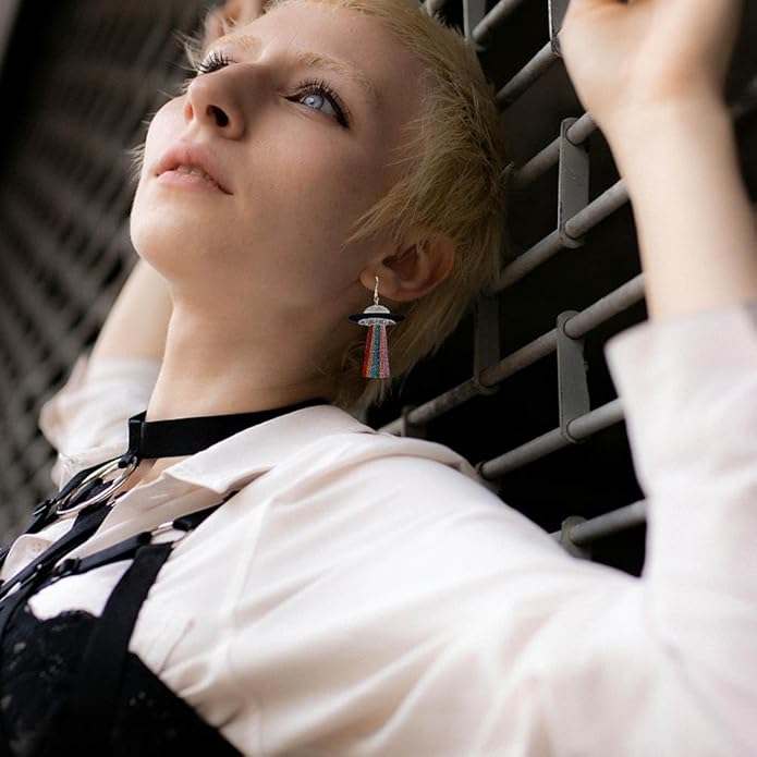 - Classic Style Earrings:These funny earrings are a fun style.They are a fun and flirty choice you can pair with any outfit. With their unique,spaceship-shaped design, these earrings are sure to turn heads. The intricate detailing and delicate curves create a look that is both cute and eye-catching.