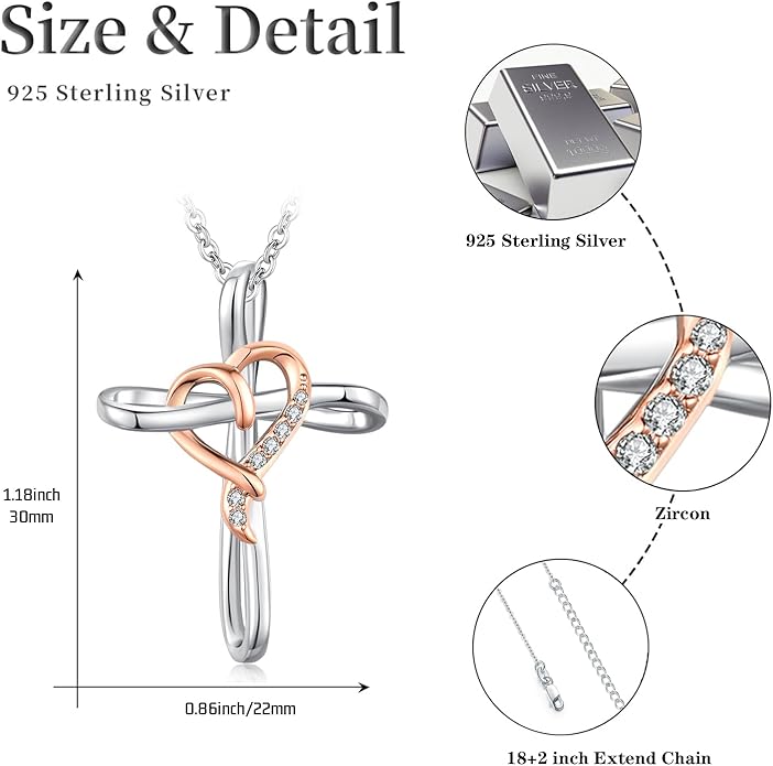 - 【Cross Necklace Quality】Our cross necklace is made of 925 Sterling Silver and zircon, they have the best clarity and chroma, making it more shining and charming to wear. They are lead-free, nickel-free, and non-allergenic, suitable for all women.