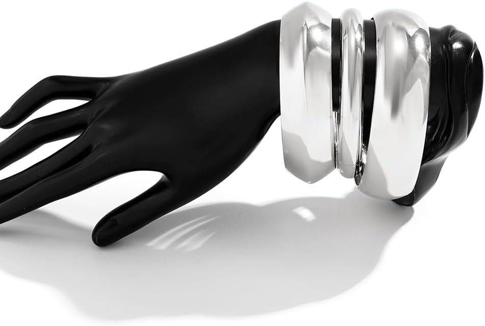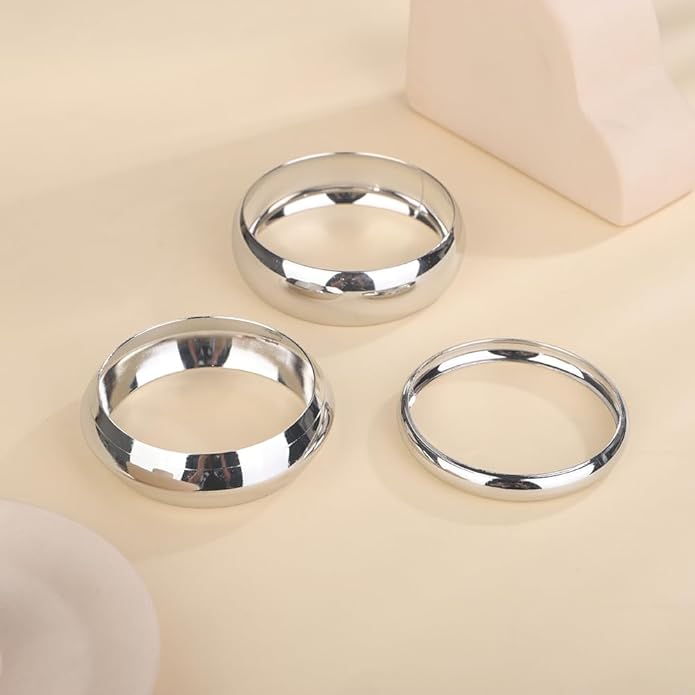 - Size : The biggest one: 7cm/ 2.75Inches(diameter) * 2 cm/ 0.78 inches(height) . The second one: 6.7 cm/ 2.63 inches(diameter) * 1.7 cm/ 0.7inches(height) , The smallest one: 6.7 cm/ 2.63 inches(diameter) * 0.8 cm/ 0.3 inches(height) . This set of bracelets is not adjustable bangle. Please make sure it's suitable before you buy it.