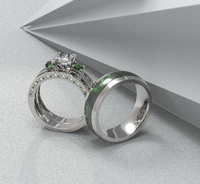 - EXQUISITE CRAFTSMANSHIP: The ring set is brand new and guaranteed to be in perfect condition. It is nickel-free, hypo-allergenic, and never green. The high polish smooth inner face not only adds elegance but also provides comfort.