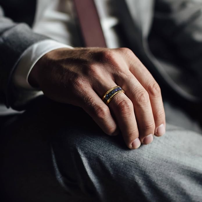 - PREMIUM MATERIAL: Our men's wedding bands are made of high-density tungsten carbide, known for its durability and scratch resistance. The interior is inlaid with gold foil, nebula and galaxy elements, making it perfect for everyday use or special occasions.