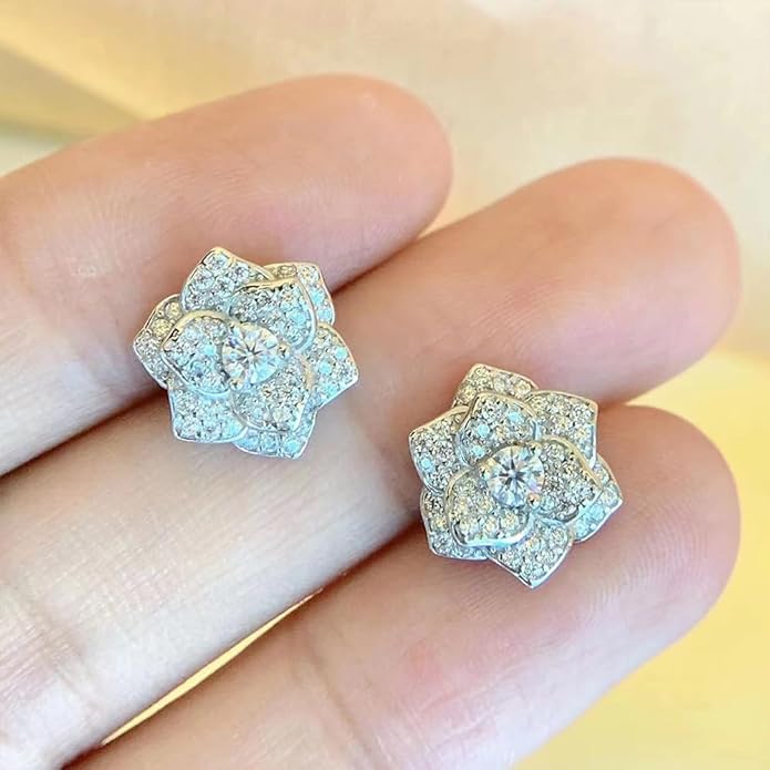 14K Gold 0.5ct D-color Round Cut Brilliant Camellia Diamond Stud Earrings for Women, Great for Gifting on Special Occasions like Engagement (White Gold)
