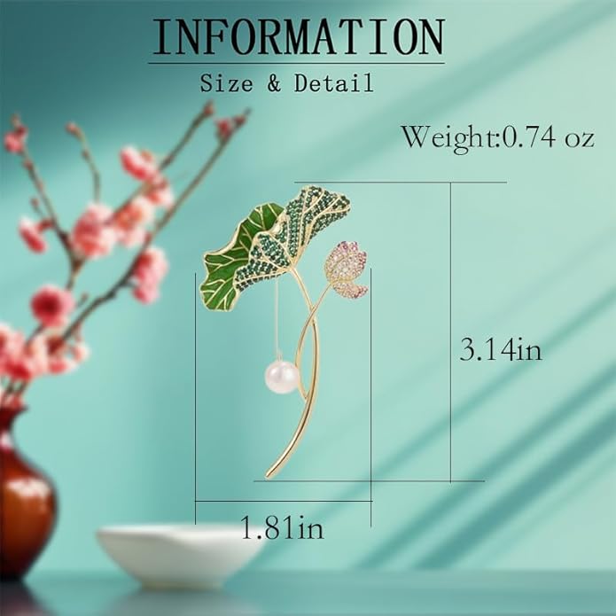 - ✅Lotus Brooch Pin Size :3.14*1.81inch,Weight:0.74oz. This very moderate size and weight of the Lotus Brooches for women also comes with a corresponding delicate packaging box.