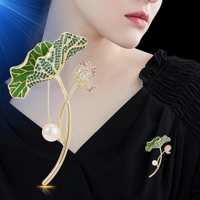 - ✅Enamel Flower Brooch Material :The lotus brooch pin is made of copper/rhinestone/pearl with electroplating process and enamel process on the surface, which will not cause skin allergy and is harmless to the body. Our lotus brooches pins green can decorate all kinds of clothing.
