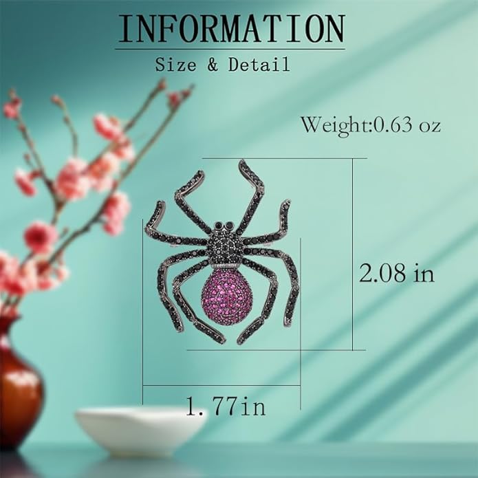 - 🕷️ Spider Brooch Size 🕷️ The size of brooch is 2.08 x 1.77 inches,and the weight of this brooch is 0.63 oz.And this rhinestones crystal spider brooch will come with a delicate box.