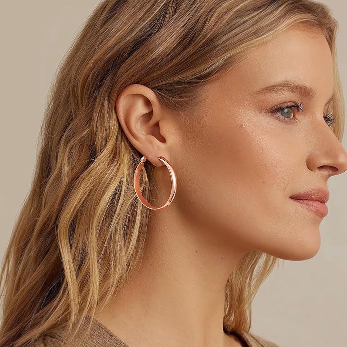 - Hypoallergenic: 14k rose gold hoops earrings for women with 925 sterling silver post, no lead or nickel hypoallergenic hoop earrings for women's sensitive ears
