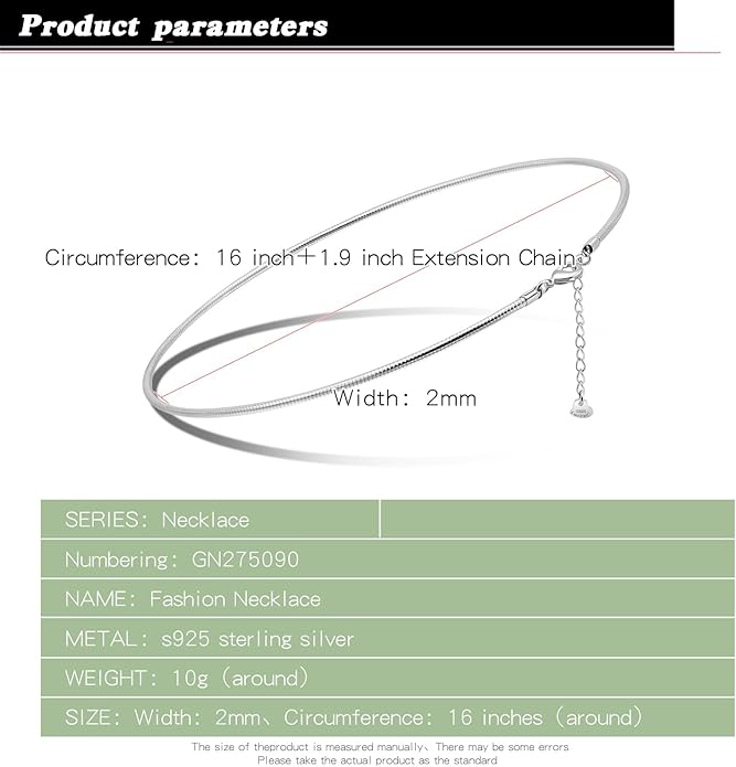- FASHION AND SIMPLEE - Add style to a basic look with this solid and versatile 925 Sterling Silver collar Necklace. This simple necklace is polished and domed to create an everyday timeless classic with modern elegance. Perfect for any occasion, wear alone to elevate a casual or formal outfit, with your favorite pendant or layered with other chains for a trendy fashion statement.Cool and feminine silhouette accentuate your alluring charm. It is the personalized fashionr necklace for everyday wear