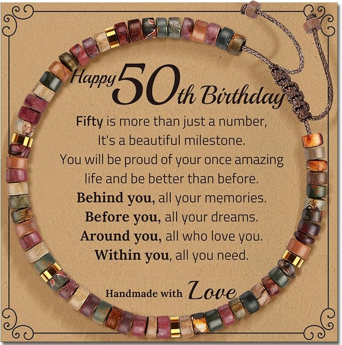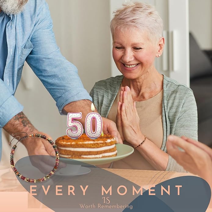 - 50th Birthday Gifts for Women: Happy 50th birthday gifts for women, celebrate her turning 50 with this tiny milestone birthday bracelet. Special gifts for a special day.