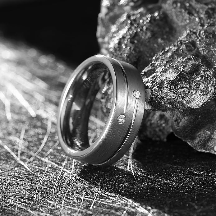 King Will Mens Tungsten Wedding Band with Cubic Zircon Inlay 7mm/8mm Flat Cut Comfort Fit Engagement Rings