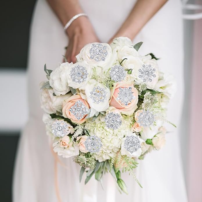 - Sparkling crystal flower brooches is easy to put on and off, can be used for many craft decorations, such as DIY the brides bridesmaid wedding bouquet, dress, socks, hats, suits, coats, bags and so on.