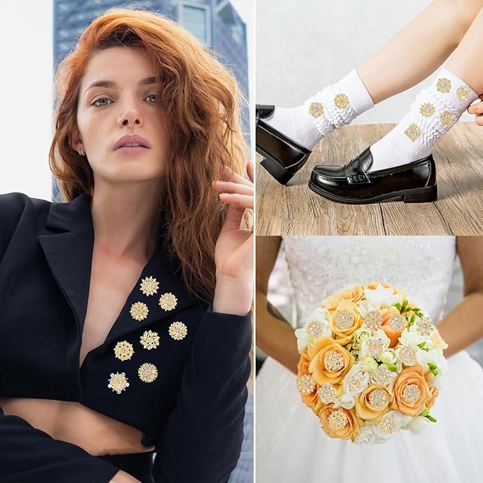 - Sparkling crystal flower brooches is easy to put on and off, can be used for many craft decorations, such as DIY the brides bridesmaid wedding bouquet, dress, socks, hats, suits, coats, bags and so on.