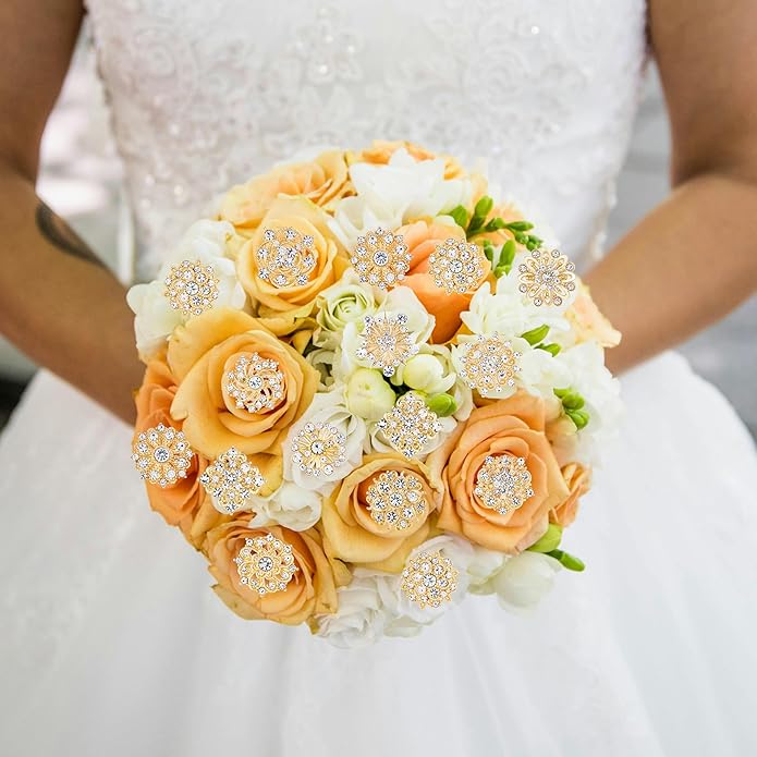 - Sparkling crystal flower brooches is easy to put on and off, can be used for many craft decorations, such as DIY the brides bridesmaid wedding bouquet, dress, socks, hats, suits, coats, bags and so on.