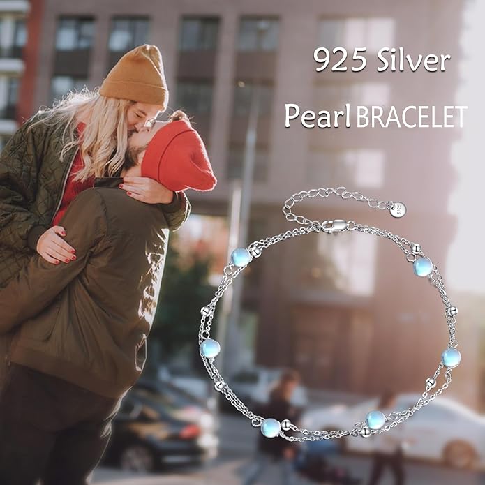 CRMAD Pearl/Moonstone/Larimar/Turquoise/Opal/Black Onyx Bracelet Anklet for Women Sterling Silver Beach Jewelry Gift for Women