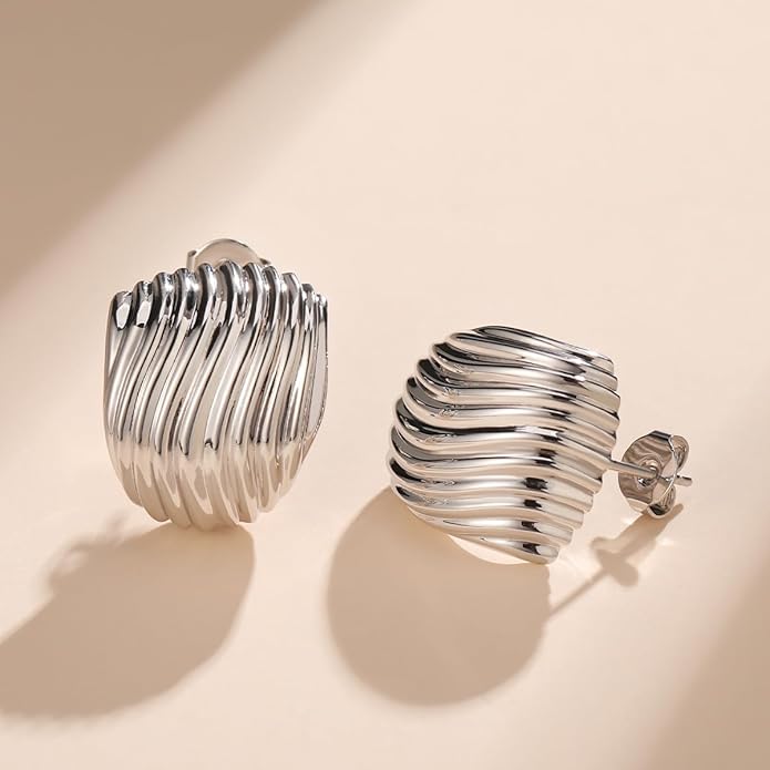 - Stylish and Bold: gold ripple texture stud earrings have a vintage chic feeling. The statement earrings is lightweight and comfortable to wear