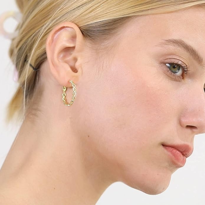 - 【Special Gift】 These gold plated women's hoop earrings are made with love. The twisted earrings hoops are carefully crafted by professional workers and packed in a beautiful gift box. Hypoallergenic hoops earrings that won't tarnish are great as gifts. So you can also gift gold plated hoops earrings to your friends Mother's Day, your wife , birthday, anniversary, bridal party, wedding, engagement, valentine's day, banquet, party or everyday wear.
