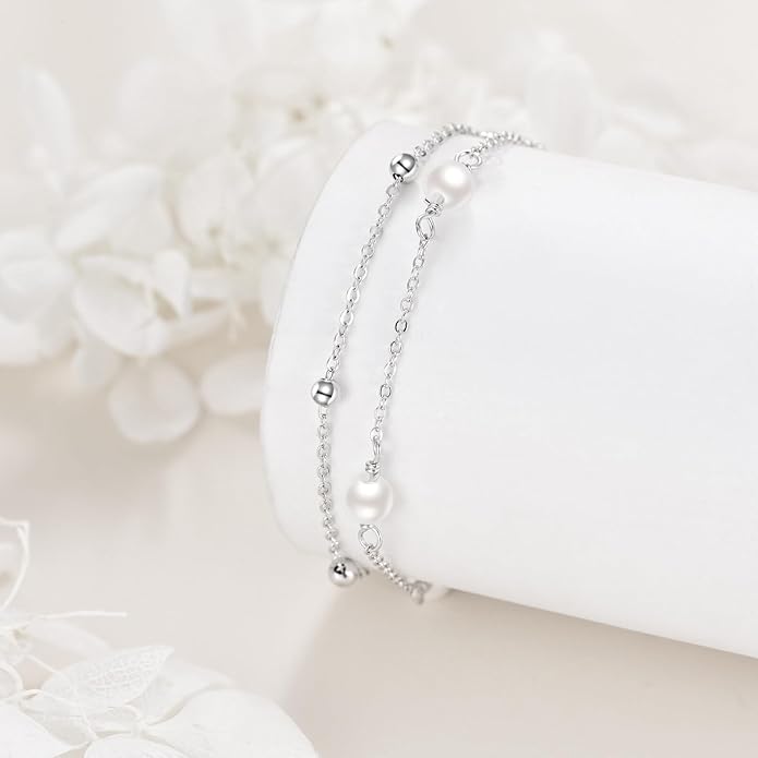 CRMAD Pearl/Moonstone/Larimar/Turquoise/Opal/Black Onyx Bracelet Anklet for Women Sterling Silver Beach Jewelry Gift for Women