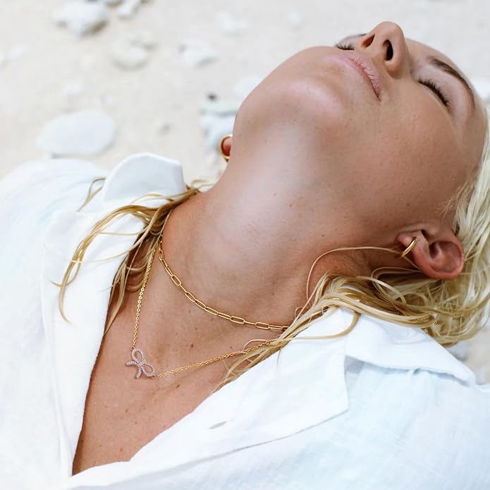 - 【BOW NECKLACE READY IN ONE GO】The Gold chain necklace length: 14.6+2 inch extension, allowing for adjustable necklace length. Unlike the other types of jewelry clasps, the Necklace adds a Lobster Clasp Type design, provides greater security and can be a lot easier to open and close. (Note: Please check the necklace size before ordering!)