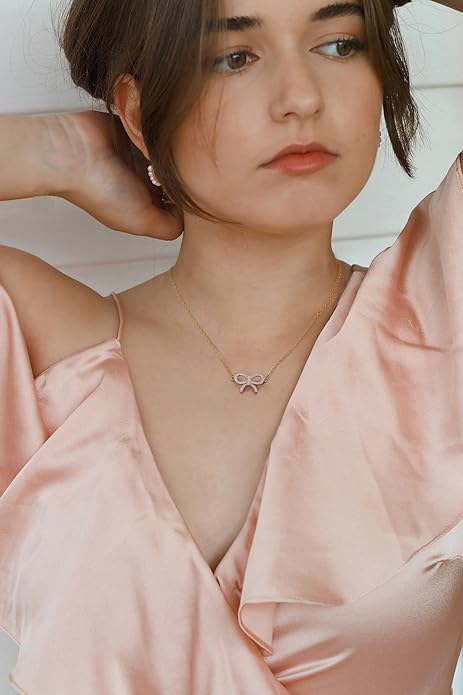 - 【Gold Necklace for Women】Add a unique touch to your style game with the Bow pendant necklace from CANEVINKA. This Cute necklace features a modern and trendy jewelry that goes with just about everything. Fastened on a Gold bow necklace with an adjustable, it allows you to choose the necklace length fix yourself. This Layered necklace can also be paired with other necklaces.