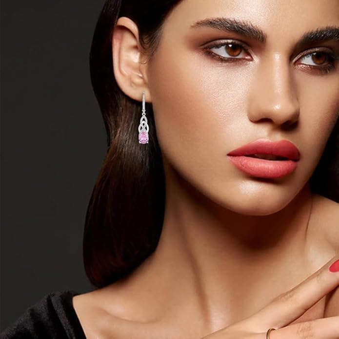 JO WISDOM Celtic Knot Infinity Jewelry Set for Women 925 Sterling Silver Pink Tourmaline Dangle Drop Leverback Earrings October Birthstone Necklace Pendant Gemstone Jewelry