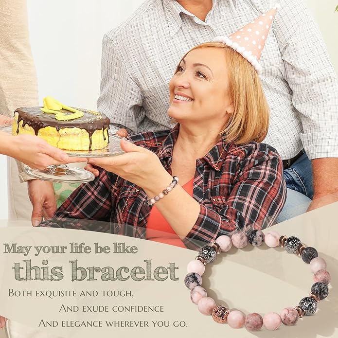 - Uniquely Designed Pink Zebra Jasper Bracelet: The Pink Zebra Jasper Bracelet symbolizes vitality, wealth and good fortune, helping to alleviate negative energies and strengthening one's vitality, charisma and affinity. It is also a gemstone that guards love and is said to be worn by lovers or couples for long lasting relationships