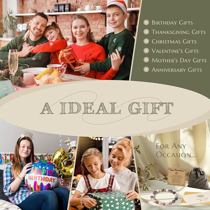 - 50th Birthday Gifts for Women: Remind fifty fabulous years with a natural stone bracelet. Fifty is a beautiful milestone, embrace every change, experience, challenge and moment of joy coming your way