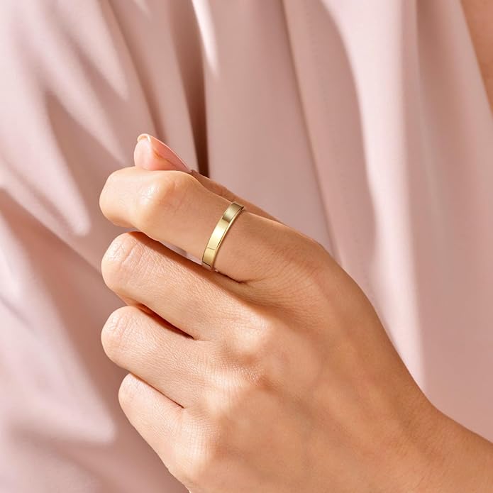 - Design: 2mm 4mm 6mm wedding rings for men and women. 24K gold-plated color, high polish finish, classic flat design, beveled edges, comfortable dainty simple ring