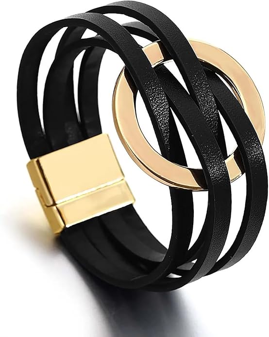 - 【UNIQUE DESIGN】 Our gorgeous and attractive leather bracelet features multiple strands of leather cords combination in different texture, adorned with metal circle. You can wear our wrap bracelet on different occasions, no matter shopping, working, party, dance or dating, this bracelet will attract a lot of attention, you'll get more compliments.
