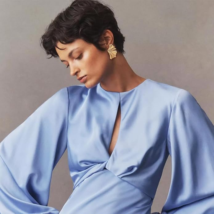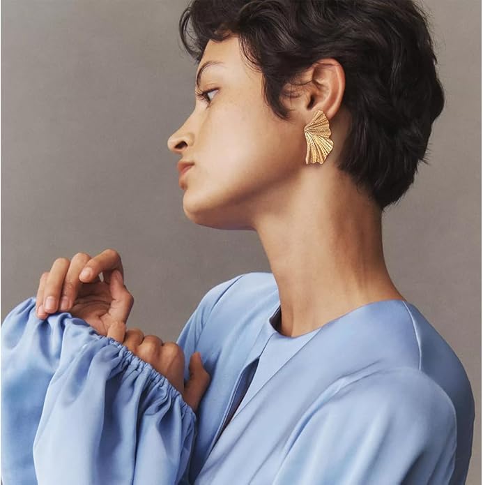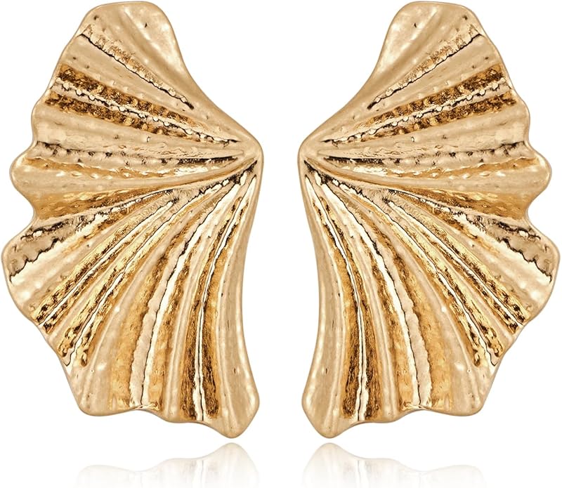 Chunky Gold Statement Earrings For Women Gold Plated Sectored Flower Leaf Shell Angel Wing Earrings Large Stud Earrings Hypoallergenic Earrings