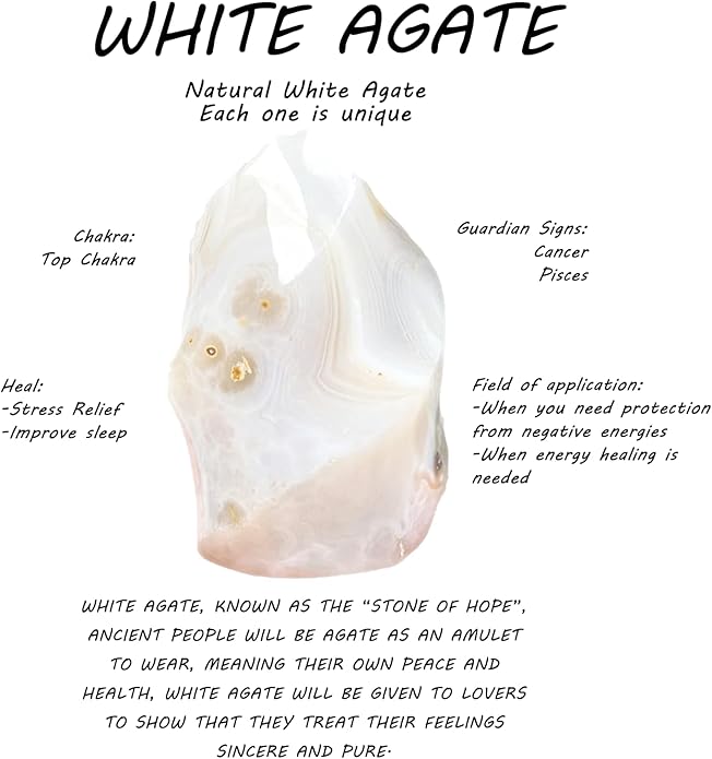 - Each White Agate is Unique:Natural white agate pendant necklace,white agate is known as the “stone of hope” and corresponds to the top chakra, helping to relieve stress, improve sleep, and enhance intuition for water signs such as Cancer and Pisces.