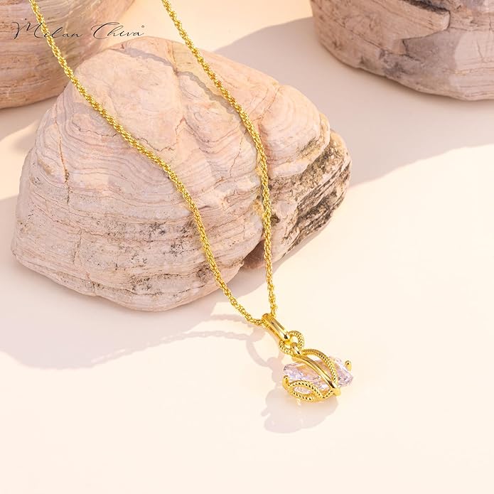 Milan Chiva Gold Pendant Necklace for Women 14K Dainty Cubic Zirconia GemStone Statement Chain Jewelry