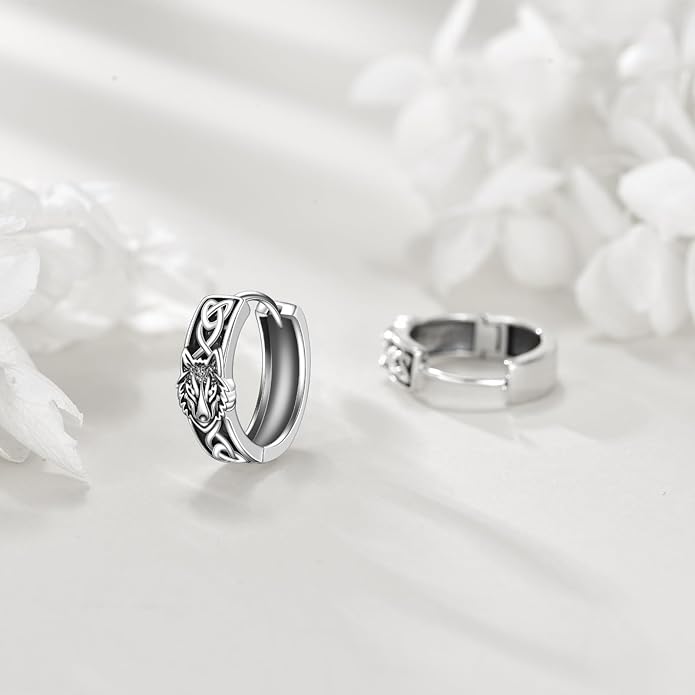 Hoop Earrings for Men Women 925 Sterling Silver Ankh/Wolf/Celtic/Opal Earrings Jewelry Gifts