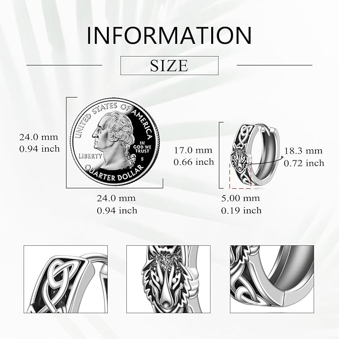 - Daily Wear: Viking wolf earrings size: 18x16mm(0.71x0.67 inch), a pair of weights: 5.28g, comfortable to wear. It can be worn with both casual and formal outfits, adding a pop of color and elegance to your overall look.