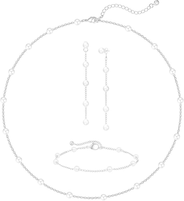 - Pearl Jewelry Set Design: Our pearl jewelry set combines the latest fashion, It includes pearl choker necklace, dainty pearl bracelets, and simple pearl drop earrings. You can wear them all together or separately. This silver jewelry set have both retro elegance and fashion trend elements and highlights the wearer's taste and charm.