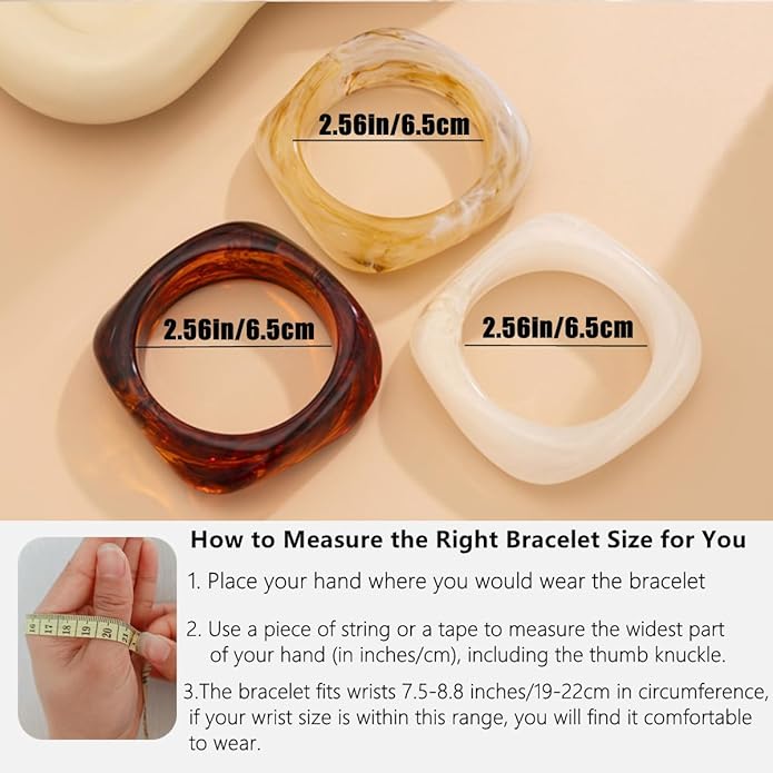 - Irregular Resin Bracelet Size: the inner diameter of the chunky colorful bracelet is about 2.56 inches/6.5cm, suitable for wrists with a circumference of 7.5-8.8 inches, easy to wear and take off. Please measure your wrist size before purchase
