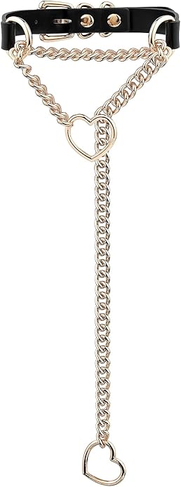 - CHIC DESIGN: This unique necklace seamlessly combines a leather collar with a slip-chain necklace design. Crafted from 3/4" vegan leather in Black/Pink, it features no nickel hardware available in silver, gold, or gunmetal. The design is completed with a Y-necklace that drapes below, adorned with charming heart O-rings.