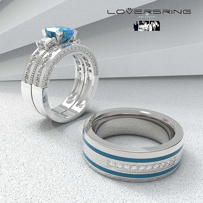 - WOMEN'S RING: 925 Sterling Silver heart Opal 3 pieces wedding engagement ring set.Paved with aaa+ clear sparkling cubic zirconia stones.No stone fall out. .Womens Sizes AVAILABLE: 5 6 7 8 9 10