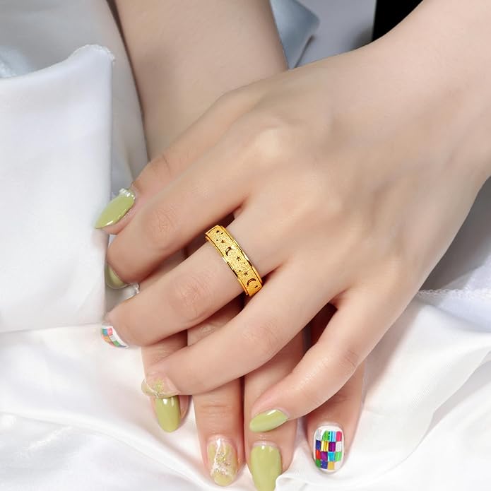 AmorArtSky Anxiety Ring for Women Men, Titanium Stainless Steel Spinner Ring, 5 Colors, 6MM, Size 6-10, 3 Styles Anxiety Ring-Moon Star, Sandblasted Finished, Hollow Outer