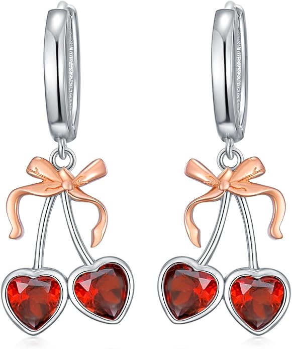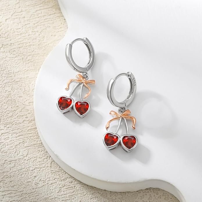 - 🍒Cherry Bow Jewelry Material🍒 This Cherry Bow Earring is made from Hypoallergenic real 925 sterling silver and high-quality cubic zirconia, Nickel-free, Lead-free, and Cadmium-free. Long-Time Wearing Keeps You a Good Health
